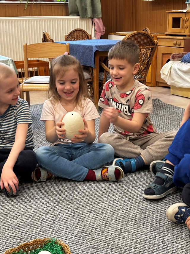 A Gyakorlókertben tojáskereső játékot is szerveztünk. A gyerekek lelkesen kutattak az elrejtett tojások után, miközben átélhették az ünnep játékos és közösségépítő oldalát.